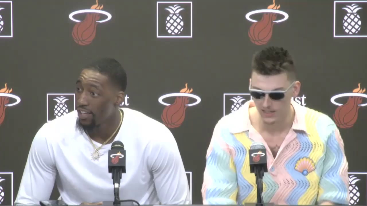 Miami Heat center Bam Adebayo and guard Tyler Herro began their postgame press conference with a little fun.