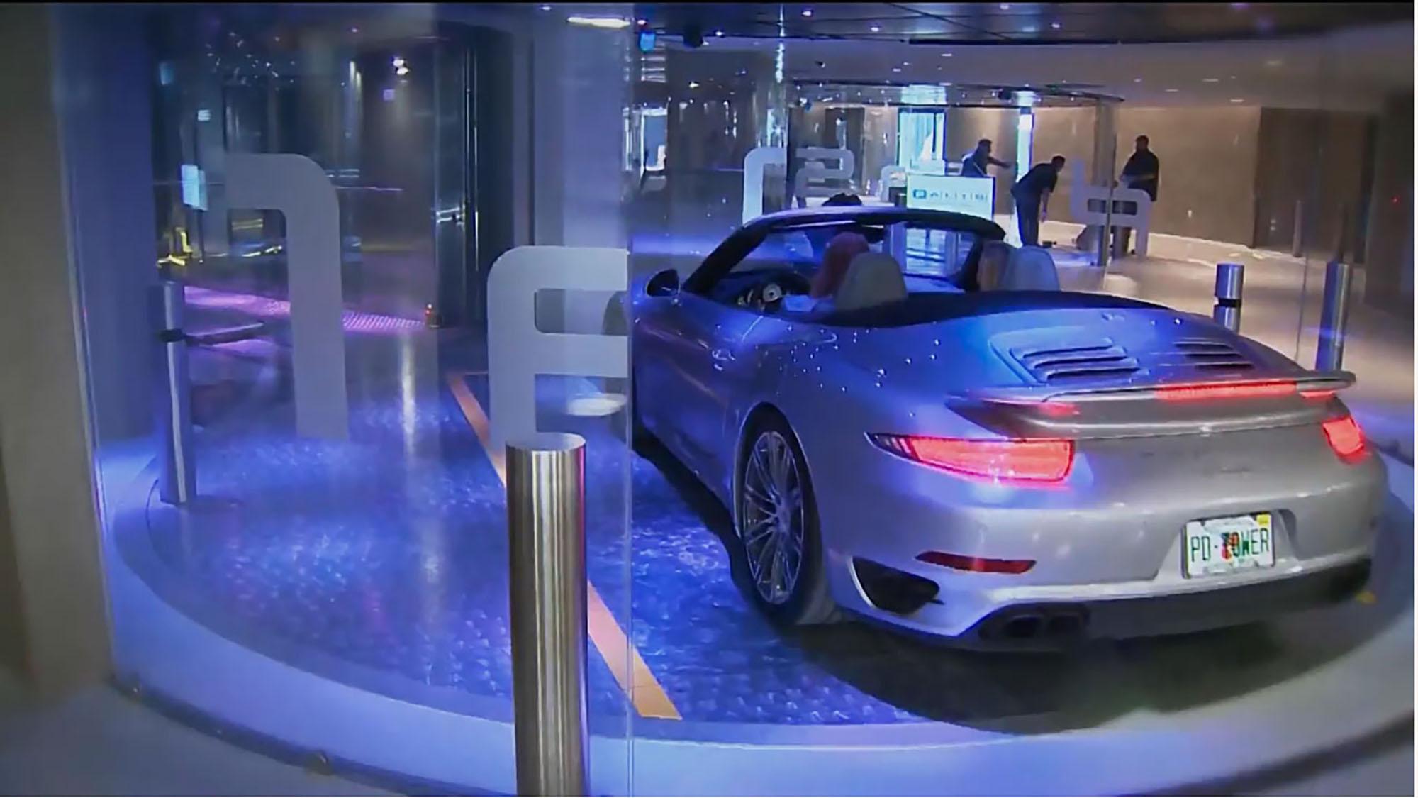 I think the most unique feature is the Dezervator, a car-lift system that brings you and your car inside the elevator, traveling at 800 feet per minute, up to your apartment. There, the elevator dispenses you in your car inside your garage, two steps from your front door. We also created swimming pools on the balconies. The building has every amenity, including a restaurant that does room service.