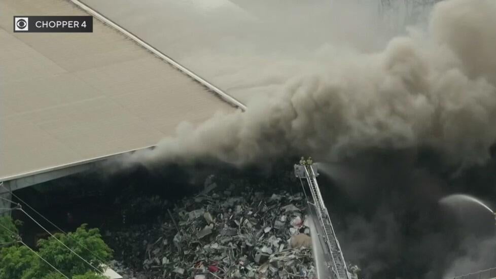 Raging fire burns at Northwest Miami-Dade scrap metal facility