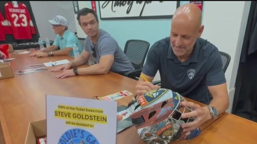 CBS News Miami’s Steve Goldstein, Florida Panthers sign autographs for Cats fans