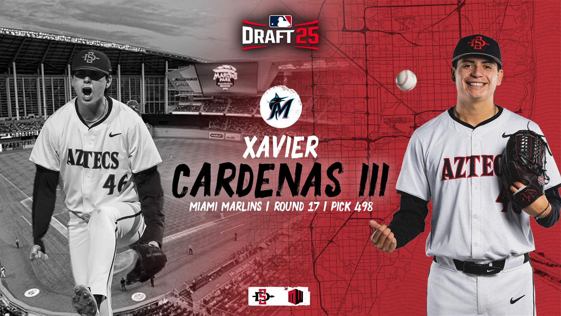 Cardenas was selected by the Marlins with the third pick of the 17th round and 498th overall, giving the Aztecs 228 MLB Draft choices since 1965 and 32 selections since 2015.