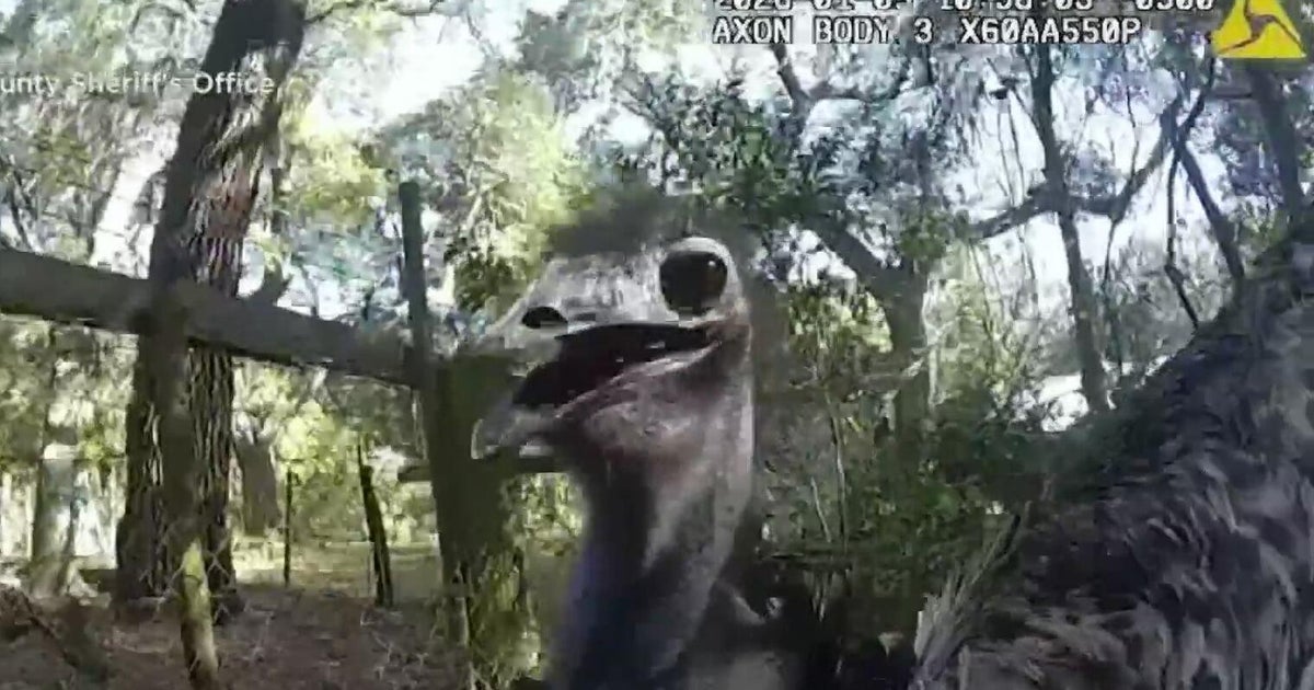 Viral bodycam video captures Florida deputy wrangling runaway emu CBS News