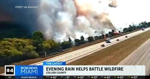 Evening storms brought over half an inch of rain to the southern areas of the Big Cypress National wildfire, offering much-needed relief to firefighters. Despite the help, the Collier County blaze has now spread to 35,000 acres and remains a significant challenge for containment efforts.